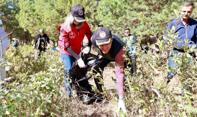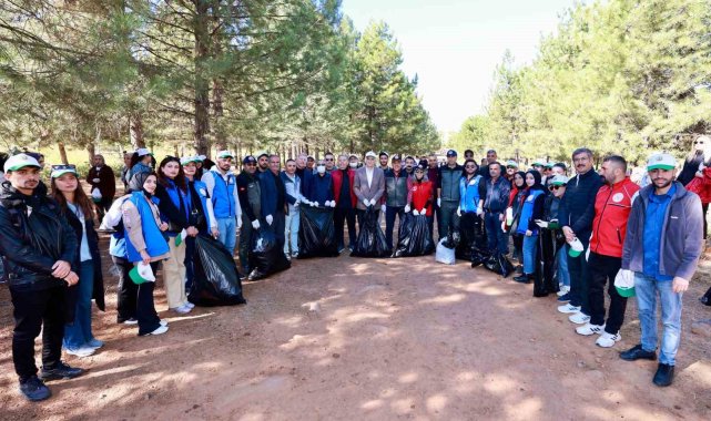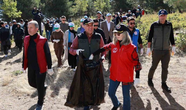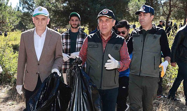 Bingöl'de gençler ve il protokolü, ele ele verip ormanlık alanda temizlik yaptı.