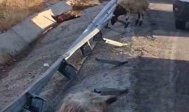 Bingöl'de yola çıkan ata çarpmamak için sürücüsünün manevra yaptığı canlı hayvan taşıyan kamyon, şarampole yuvarlandı. Kazada 2 kişi yaralanırken, çok sayıda küçükbaş hayvan da telef oldu.