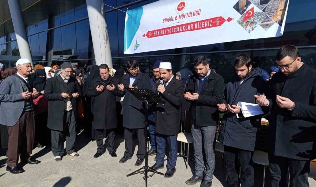 Bingöl İl Müftülüğü tarafından 151 umre yolcusu uğurlandı.Bingöl İl Müftülüğü tarafından Bingöl Havalimanı'ndan, Cidde Havalimanına direkt uçuşla umreye gidecek olan 151 vatandaş için uğurlama programı gerçekleştirildi. Umre ibadetini yapacak olan vatandaşlar, yakınlarıyla birlikte toplanma alanına geldi. Kutsal topraklara umre ibadetini yapmak üzere yola çıkan kafile dualarla uğurlandı.Müftü Vekili Bayram Öztürk, umreye giden vatandaşlara hayırlı yolculuklar dileyerek ibadetlerinin kabul olması temennisinde bulundu.