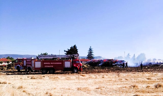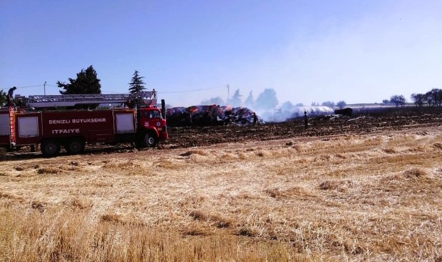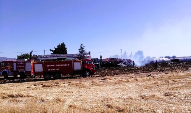 Denizli'nin Tavas ilçesinde 3 bin 500 paket yem, 20 dekar ekili arazi ve milyonluk tarımsal ekipmanların kül olduğu yangında, yaşanabilecek bir felaketi çiftçiler önledi. Çevre mahallelerden seferber olan çiftçiler, traktörlerle sürerek yangının önünü kesti.
