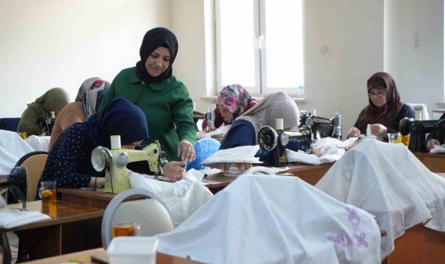 Bir döneme damgasını vuran, çeyizlik ürünlerin olmazsa olmazı beyaz iş nakışlar, Bayburtlu kadınların emekleriyle yeniden gün yüzüne çıkarılıyor. Bayburt Halk Eğitim Merkezi bünyesinde faaliyet gösteren El ve Makine Nakışları Kursunun hünerli kursiyerleri özenle işledikleri ürünleri satarak, ev ekonomisine de katkıda bulunuyorlar.Açılan kursta bir araya gelen 15 kursiyer kadın, usta öğretici Esen Köse'nin yardımıyla hep birlikte el emeği göz nuru ürünleri titizlikte işliyor. Antika kara kelle dikiş makinesinde beyaz iş seccadeleri, havluları, kanaviçeleri, çeyizlik ürünleri hazır hale getiren kadınlar, geçmişin izlerini taşıyan ürünleri kullanışlı hale getirmek için var gücüyle çalışıyorlar. Kursiyer kadınlar, babaanne ve anneannelerinden kalan kanaviçelere de modern dokunuşlar ekleyerek, bu ürünleri geri dönüştürüyorlar. Gündelik hayata uygun ürünler hazırlayan kadınlar, gelen siparişlere yetişemediklerini söyleyerek, sattıkları ürünlerden para kazandıklarını, ev ekonomisine de katkıda bulunduklarını ifade ettiler."Hastalığımı kurs sayesinde yendim"Kursa başlamadan önce ciddi bir rahatsızlık geçirdiğini söyleyen kursiyer Hülya Karaca, hastalığını kurs sayesinde yendiğini anlattı. Kursla birlikte sosyal hayatının devam ettiğini belirten Karaca, stres attığını, bu şekilde de hastalığının nüksetmediğini dile getirerek, "Ben bu kursa başlamadan önce ciddi bir rahatsızlık geçirdim. Bu rahatsızlığımdan dolayı tedavi gördüm. Kurs hocamızın sayesinde bu atölye açıldı, bana da sebep oldu ve kursa başladım burada stresimi attım, hastalığımı yendim. Kadınlarla birlikte çok güzel vakit geçiriyoruz, evime de maddi katkıda bulunuyorum, günlerim de neşeli geçiyor" dedi. Kursa başlamadan önce tam anlamıyla nakış bilmediğini, kara kelle makineyi kullanamadığını vurgulayan Karaca, kurs sayesinde el yeteneklerini geliştirdiğini, dikiş işinde ve işleme alanında ustalaştığını bildirdi."Aşkla işimizi yapıyoruz, hiç yorulmuyoruz"Arkadaşlarıyla birlikte namazlık, masa örtüsü, havlu ve çeşitli çeyiz ürünleri yaptıklarını dile getiren bir diğer kursiyer Yasemin Mercimek, hiç yorulmadıklarını işlerini aşkla yaptıklarını belirtti. Annelerinden, ninelerinden kalan kanaviçeleri masa örtüsüne, havluya, seccadeye çevirdiklerini ifade eden Mercimek, "Normalde insanlar çalıştıklarında yorulurlar ama biz işimizi aşkla yaptığımız ve çok keyifli vakit geçirdiğimiz için asla yorulmuyoruz. Annelerimizden, ninelerimizden kalan kanaviçelerimizi de çeşitli ürünlere çeviriyoruz, tekrardan hayata döndürüyoruz" şeklinde konuştu."Hem ev ekonomisine katkıda bulunuyoruz hem de keyifli vakit geçiriyoruz"Halk Eğitim Merkezi bünyesinde açılan El ve Makine Nakışları kursunda 9 yıldır usta öğreticilik yapan Esen Köse, bildiklerini kursiyerlerine de öğretti. Bu süre zarfında hiç iş bilmeyen, eline iğne iplik almamış kursiyerlerinin de olduğunu, zamanla bu kursiyerleri yetiştirdiğini kaydeden Köse, "9 yıldır bu işi yapıyorum. Bu 9 yılda eline iğne, iplik almamış, dikiş yapmamış kursiyerlerim de oldu. Şimdi de 15 kursiyerlerimle birlikte kara kelle denilen eski makinelerde, geçmişin izlerini taşıyan beyaz işi nakış yapıyoruz. Hanımlarla beraber hem ev ekonomisine katkıda bulunuyoruz, hem de hoş sohbet eşliğinde keyifli vakit geçiriyoruz" ifadelerini kullandı. Limonlu çay eşliğinde işlerini özenle ve severek yapan kadınlar, "Kadın kadının yurdudur, bilmediğimiz bir teknikte birbirimize destek veriyoruz" diyerek, beraberlik mesajı verdiler.