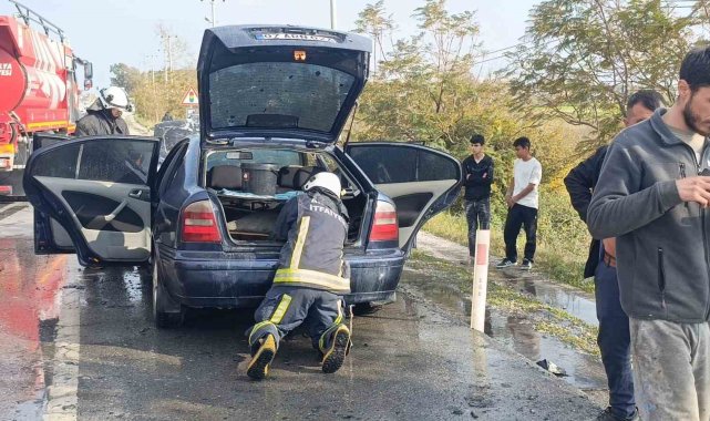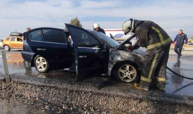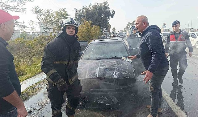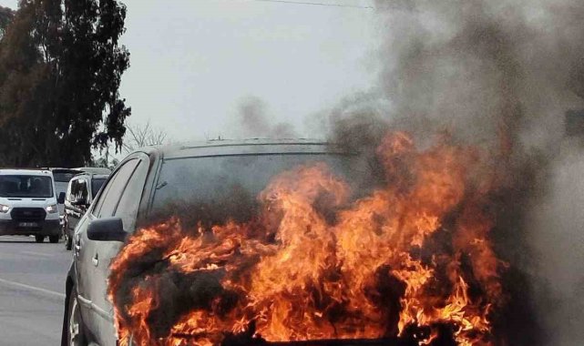 Antalya'nın Manavgat ilçesinde seyir halindeyken yanmaya başlayan otomobile ilk müdahale, olay yerinden geçen bir su tankerinden yapılırken, itfaiye tarafından soğutma çalışması yapıldı. Otomobil tamamen yanarak kullanılamaz hale gelirken, araç sahibi, otomobili bir hafta önce satın aldığını, seyir halindeyken bir an durakladığını sonra yanmaya başladığını söyledi.Edinilen bilgiye göre, Manavgat Alanya D-400 kara yolunda Manavgat istikametinden Alanya istikametine seyir halindeki Abdüssamet Aksoy'un kullandığı 07 ARN 024 plakalı otomobilden Aksaz-Karaöz kavşağına yaklaştığı sırada seyir halindeyken dumanlar çıkmaya başladı. Otomobil sürücüsünün aracı yolun sağına çekmesinin ardından yoldan geçen araç sürücüleri yardıma koştu. Araçtan bir anda alevler yükselirken yolun karşı şeridinde seyir halindeki bir su tankerinden hortum çekilerek yangına müdahalede bulunuldu. İhbar üzerine olay yerine Antalya Büyükşehir Belediyesi İtfaiyesi Manavgat Birimi ve Manavgat İlçe Jandarma Komutanlığı Merkez Jandarma Karakoluna bağlı ekipler sevk edildi. Yanan araç, itfaiye ekiplerinin soğutma çalışmasının ardından tamamen söndürülürken kullanılamaz hale geldi.Araç sahibi Abdüssamet Aksoy, aracı 1 hafta önce aldığını belirterek "Aracım LPG'li. Gaz bittiği için akaryakıt istasyonuna gidiyordum. Seyir halindeyken teklemeye başladı ve duman çıktı. Yol kenarına çektim ve yanmaya başladı" dedi.