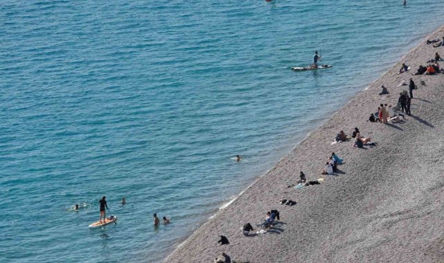 Türkiye'nin birçok kenti ağır kış şartları altında soğuk ve kar ile mücadele ederken Antalya'da yazdan kalma günler yaşanıyor. Yarıyıl tatili ile birlikte güneşli ve sıcak havayı fırsat bilen kent sakinleri Konyaaltı Sahili'ni doldurdu.Ocak ayının ortasında Türkiye'nin birçok kentinde ağır kış şartları hakim olurken, Antalya'da yazdan kalma günler yaşanıyor. Doğu illeri kar ve soğuk hava etkisi altındayken, Antalya'da güneşli ve sıcak hava etkili oldu. Okullarda yarıyıl tatilinin de girmesi ile birlikte güneşli havayı fırsat bilen kent sakinleri ve yabancı turistler Antalya'nın dünyaca ünlü Konyaaltı Sahili'ne akın etti. Masa ve sandalyelerini alan Antalyalılar sahilde bulunan yeşil alanları doldururken, kimileri ise kumsalda oturmayı tercih etti. Hava sıcaklığının 19 derece, deniz suyunun ise 20 derece olarak ölçüldüğü kentte bazı vatandaşlar sıcak havayı spor yaparak değerlendirirken, kimileri ise denize girmeyi tercih etti."Dört mevsimi yaşıyoruz"Yakınları ile birlikte Konyaaltı Sahiline gelen Vedat Coşkun, "Hava çok güzel, sabah denize girecektik ama şortumuz yoktu. Antalya böyle bir tarafımızda kar var, bir tarafı yaz. Dört mevsimi yaşıyoruz" dedi. Okulların yarıyıl tatiline girmesi nedeniyle Antalya'ya geldiklerini belirten Hale Kılınç ise, "Okullarında tatil olması ile fırsat bildik güneşli havayı hemen kendimizi sahile attı. Isparta Eğirdir'den geliyorum. Şu anda Isparta bayağı bir soğuk, Antalya'ya gelince Isparta'nın yaz havasını yaşıyor gibi oluyor insan. Sahilde çok kalabalık, sabah geldiğimizde bu kadar değildi. Saat geçtikçe daha da bir kalabalıklaştı.