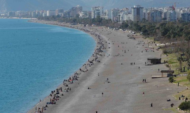 Türkiye'nin birçok kenti ağır kış şartları altında soğuk ve kar ile mücadele ederken Antalya'da yazdan kalma günler yaşanıyor. Yarıyıl tatili ile birlikte güneşli ve sıcak havayı fırsat bilen kent sakinleri Konyaaltı Sahili'ni doldurdu.