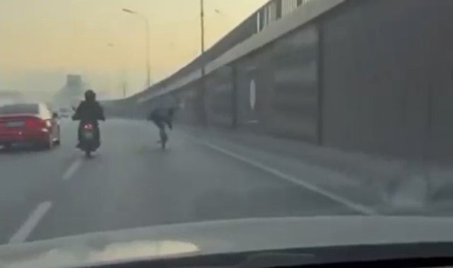 Gaziantep'te bir şahsın, seyir halinde bisiklet üstünde yatarak yol alması ve kendi canı ile trafiği tehlikeye atma anları kameralara yansıdı.Gaziantep'in Şehitkamil ilçesi İpekyolu'nda bir şahıs, seyir halinde bisikletin üstüne yatarak yol aldı. Şahsın bisikletin üzerinde yatarak yol alma ve kendi canı ile trafiği tehlikeye atma anları ise cep telefonu kamerasına yansıdı.Şahıs, bir o şekilde yol aldıktan sonra normal sürüşe geçerek gözden kayboldu.