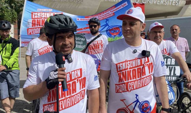 Tüm Eğitim Çalışanları Sendikası (TEÇ-SEN) ve Üniversite İdari Personel Sendikası (ÜNİPER SEN) üyeleri 8. dönem toplu sözleşmesine dikkat çekmek amacıyla Eskişehir'den Ankara'ya doğru bisikletleriyle yola çıktı.