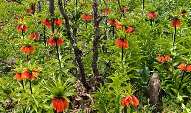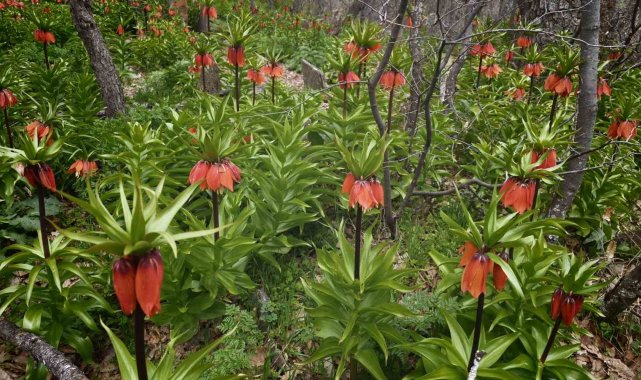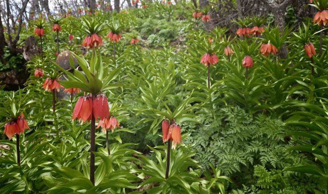Bitlis'in Mutki ilçesinde baharın gelmesiyle birlikte açan ters laleler doğayı adeta renklendirdi.