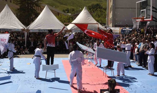 Bitlis'te 19 Mayıs Atatürk'ü Anma ve Gençlik ve Spor Bayramı kutlamaları çerçevesinde kortej yürüyüşü yapılarak Gençlik Festivali ve Kitap Fuarı açıldı.Bitlis Valisi Ahmet Katakaya, Belediye Başkanı Nesrullah Tanğlay, Jandarma Komutanı Tuğgeneral Zafer Tombul'un da katıldığı kortej yürüyüşünde yaklaşık 50 metrelik Türk bayrağı da taşındı. Bitlis Mevlana Parkı'na kadar süren yürüyüş sonrası 7 gün sürecek Gençlik Festival ve Kitap Fuarı'nın da açılışını yaptı. Açılışta konuşan Bitlis Valisi Ahmet Karakaya, 106. yıl önce Kurtuluş Savaşı meşalesinin yakıldığı, Gazi Mustafa Kemal Atatürk'ün Samsun'a çıkış tarihi olan 19 Mayıs'ın bir milletin genciyle, yaşlısıyla, kadınıyla, erkeğiyle, doğusuyla, batısıyla emperyalist güçlerin işgal girişimine dur dediği bir destanın başlangıcı olduğunu söyledi. Vali Karakaya, Gençlik Festivali ve Kitap Fuarı'na değinerek, birbirinden ünlü yazarların Bitlis'te okurlarıyla buluşacağı etkinliklerin 7 gün süreceğini belirterek, "Bugün burada, gençlerimizin hayallerine dokunacak, onların ufkunu genişletecek bir organizasyonda buluşmanın mutluluğunu yaşıyoruz. Festivalimizde; AFAD, emniyet, jandarma gibi kurumlarımızın eğitim tırları, DENEYAP atölyeleri, MTA Genel Müdürlüğü'nün interaktif etkinlikleri, üniversitemizin ve okullarımızın bilimsel çalışmaları ve daha birçok kamu kurumumuzun teknolojik hizmetleri sizlerle buluşacak. 60'tan fazla uygulamalı atölye, 6 etkinlik tırı ve onlarca etkinlik aracı ile ilimizde bir ilki sizler için gerçekleştiriyoruz" dedi.Vali Karakaya, festival kapsamında 100'ün üzerinde yazar ve 120'den fazla yayınevinin okuyucuyla bir araya geleceğini ifade ederek, şunları söyledi:"Festival kapsamında düzenlenen Kitap Fuarı ise Hayati İnanç, Nurullah Genç, Hatice Kübra Tongar, Merve Gülcemal, Tarık Tufan, Murat Menteş, Şule Köklü, Gülşen Gazel ve Tufan Gündüz gibi yazarların yer aldığı, 100'ü aşkın seçkin yazarımızı ve 120'den fazla yayınevini bir araya getiriyor. Söyleşiler, imza günleri ve yayınevi etkinlikleri ile kültür ve edebiyat dolu bir hafta sizleri bekliyor. Bu festivali ve fuarı sadece bir etkinlikler bütünü olarak değil, kadim medeniyetlerin izlerini taşıyan Bitlis'imizin ruhuyla harmanlanmış bir buluşma olarak görüyoruz."Bitlis Belediye Başkanı Nesrullah Tanğlay ise Bitlis Gençlik Festivali ve Kitap Fuarı'nın hayırlı olmasını dileyerek, "Bir hafta burada güzel etkinlikler olacak. Özelikle buraya gelen deprem tırları, AFAD tırı ve aynı zamanda kitap fuarı güzel olacak. Vatandaşlarımızı buraya davet ediyoruz" dedi.Gençlik ve Spor İl Müdürü Bilal Elkatmış ise "İstiklal mücadelemizin başladığı 19 Mayıs gününün gençlere armağan edilmesi, Gazi Mustafa Kemal Atatürk'ün ve aziz milletimizin gençlere verdiği değerin ve duyduğu güvenin bir göstergesidir. Vatanını canından üstün tutan ecdadımızın verdiği mücadeleler ve büyük fedakârlıklar sonucu kurulan Cumhuriyetimiz sizlere emanettir. Bu büyük sorumluluğun bilinciyle çok çalışmalı, ülkemize ve milletimize faydalı bireyler olmaya gayret etmelisiniz. Bu aziz vatanın ecdadımızdan bizlere emanet olduğunun idraki içinde, tarihimize ve değerlerimize sadakatle sahip çıkarak, ülkemizi hep birlikte daha huzurlu günlere taşımanın gayreti içinde olacağınıza inanıyorum" ifadelerini kullandı.Programda sporcular tarafından çeşitli gösteriler sunulurken, tekvando, eskrim ve basketbol sporcuları gösterilerini sundu. Ziya Eren Güzel Sanatlar Lisesi öğretmenleri tarafından mini bir konser verilirken, halkoyunları gösterileri de programda büyük ilgi gördü.Jandarma Havacılık Komutanlığına bağlı F4 tipi uçaklar ile Skorsky tipi helikopter, etkinlik alanı üzerinde gösteri uçuşu gerçekleştirdi. Selamlama yapan uçak ve helikopterleri çekebilmek için etkinliğe katılan vatandaşlar cep telefonlarıyla görüntü çekmeye çalıştı.Açılış programı, protokol üye üyelerinin stantları gezmeleri ile sona erdi.19 Mayıs Atatürk'ü Anma, Gençlik ve Spor Bayramı, Tatvan'da da coşkuyla kutlandı.