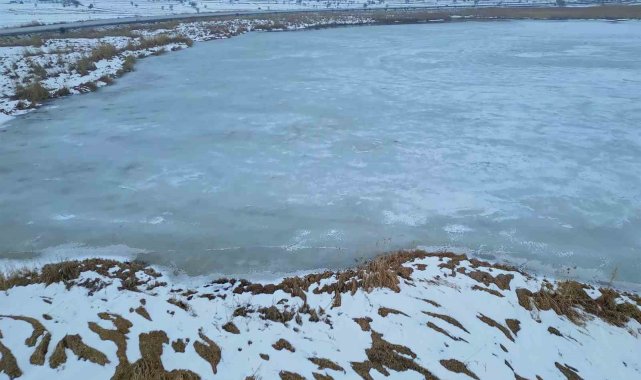 Bitlis'te sazlıklar dondu, kuşlar gölde toplandı