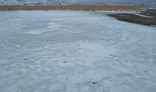 Bitlis'te etkisini artıran soğuk hava nedeniyle sazlıkların donması üzerine kuşlar Van Gölü'nde yoğunlaşmaya başladı.