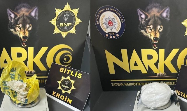Bitlis'in Tatvan ilçesinden durdurulan bir araçta yapılan arama Metanfetamin ve Eroin maddesi bulundu.