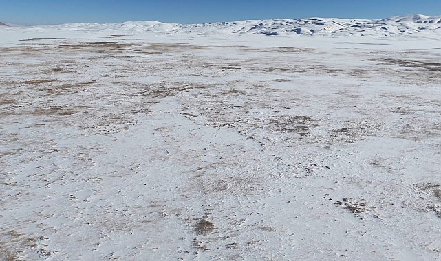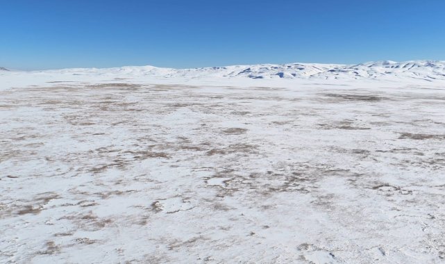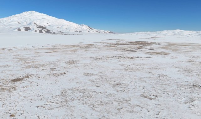 Bitlis'in Adilcevaz ilçesinde etkili olan soğuk havadan dolayı Cil Gölü'ün yüzeyi tamamen dondu.