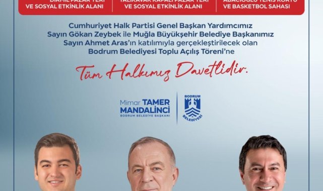 Bodrum Belediyesi, kentin sosyal dokusunu güçlendirmek ve vatandaşlara modern yaşam alanları sunmak amacıyla hayata geçirdiği üç önemli projenin açılışını gerçekleştirmeye hazırlanıyor.Yalıkavak Kapalı Pazar Yeri ve Sosyal Etkinlik Alanı, Dirmil Pazar Yeri ve Sosyal Etkinlik Alanı ile Abacıoğlu Tenis Kortu ve Basketbol Sahası, düzenlenecek törenle vatandaşların hizmetine sunulacak. Toplu açılış töreni; Cumhuriyet Halk Partisi Yerel Yönetimler ve Dirençli Kentlerden Sorumlu Genel Başkan Yardımcısı Gökan Zeybek ile Kıyı Ege Belediyeler Birliği Başkanı ve Muğla Büyükşehir Belediye Başkanı Ahmet Aras'ın katılımıyla gerçekleşecek. Tören, 15 Ocak Perşembe günü saat 14.30'da Yalıkavak Kapalı Pazar Yeri ve Sosyal Etkinlik Alanı'nda yapılacak.Başkan Mandalinci'den tüm Bodrumlulara davetProjelerin hayata geçirilmesinde emeği geçenlere ve hayırseverlere teşekkür eden Bodrum Belediye Başkanı Tamer Mandalinci, tüm kent sakinlerini bu heyecana ortak olmaya çağırdı. Başkan Mandalinci mesajında şu ifadelere yer verdi:"Değerli hemşehrilerim, kıymetli kent sakinlerimiz; hayırseverlerimizin desteğiyle belediyemiz tarafından hayata geçirilen projelerle, sizlere daha konforlu bir kent yaşamı sunmayı hedefliyoruz. Bodrumumuza kazandırdığımız yeni yatırımların heyecanını ve gururunu hep birlikte yaşamak için tüm halkımızı 15 Ocak Perşembe günü saat 14.30'da Yalıkavak Kapalı Pazar Yeri ve Sosyal Etkinlik Alanı'nda düzenleyeceğimiz Toplu Açılış Törenimize bekliyoruz."