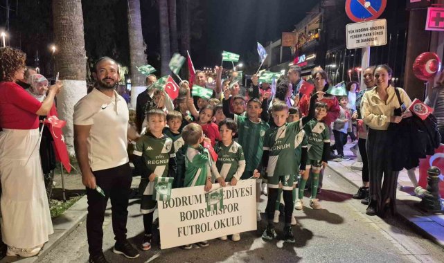 Muğla'nın Bodrum ilçesinde gerçekleştirilen Cumhuriyet Bayramı kutlama programı kapsamında, Neyzen Tevfik Caddesi'nden Belediye Meydanı'na fener alayı düzelendi.