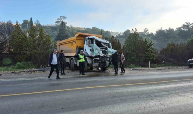 Muğla'nın Bodrum ilçesinde 2 hafriyat kamyonunun çarpıştığı kazada 1'i ağır 2 kişi yaralandı.