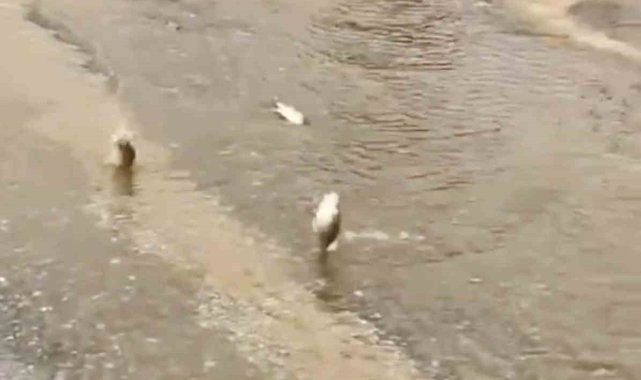 O anlar, bölge sakinlerinden tarafından cep telefonu kamerasıyla saniye saniye kaydedildi. Görüntülerde, su taşkınıyla birlikte yola savrulan balıklar ve vatandaşların kurtarma operasyonu net bir şekilde görüldü. Yağışın dinmesi ve suların çekilmesiyle bölgede hayat normale dönerken, yaşanan bu ilginç olay objektiflere bu şekilde yansıdı.