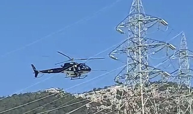 Muğla'nın Bodrum ilçesinde yüksek gerilim hatlarında bakım çalışması havadan gerçekleştirildi. İletim hatlarında zamanla oluşan kir ve çevresel etkenler nedeniyle performansı düşen izolatörler, helikopter destekli çalışma ile saf su kullanılarak temizlendi.