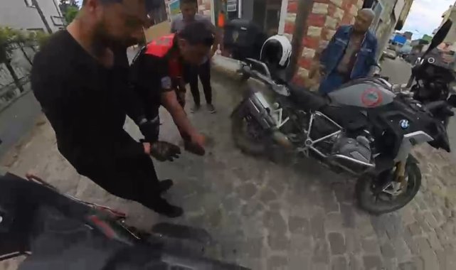 Boğazına şeker kaçan motorcuyu, polis Heimlich manevrasıyla kurtardı