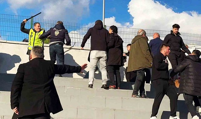 Karabük'te Bölgesel Amatör Lig'de oynanan maçta iki takımın taraftarları arasında yaşanan arbede cep telefonu kamerasına yansıdı.Bölgesel Amatör Lig 5. Grup'ta mücadele eden Eflanispor, sahasında Bartınspor ile karşı karşıya geldi. Eflanispor'un 42. dakikada Fahri Küçükkurt'un kaydettiği gole, Bartınspor 90. dakikada Ümit Emirhan Demir'in golüyle cevap verdi.Müsabakanın bitişine saniyeler kala iki takım taraftarları arasında yaşanan küfürlü atışma nedeniyle ortalık karıştı. Birbirlerine su şişeleri fırlatan tarafları polis ekipleri sakinleştirmeye çalıştı. Uyarılar dikkate alınmayınca polis taşkınlığı önlemek için olaya karışanlara copla müdahale etti. Bir polis az kalsın taşkınlığı önlemeye çalışan başka bir polisi copluyordu. O anlar da cep telefonu kamerasıyla kaydedildi.Maçı takip eden AK Parti Bartın Milletvekili Yusuf Aldatmaz'ın da yaşanan taşkınlığı önlemeye çalıştığı görüldü.