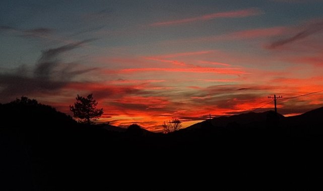 Bolu'nun Mudurnu ilçesinde akşam saatlerinde güneşin dağların arkasından batışı kartpostallık manzaralar oluşturdu.Sonbaharda uzun süredir güneşli hava görülmeyen Bolu'da bugün güneş yüzünü gösterdi. Günün sonunda Mudurnu ilçesinde ortaya çıkan gün batımı manzarası ise görenleri mest etti. Dağların arkasından batarken turuncu ve kırmızı tonlara bürünen güneş, adeta görsel bir şölen sundu. Güneşin batış anı fotoğraf karelerine yansıdı.