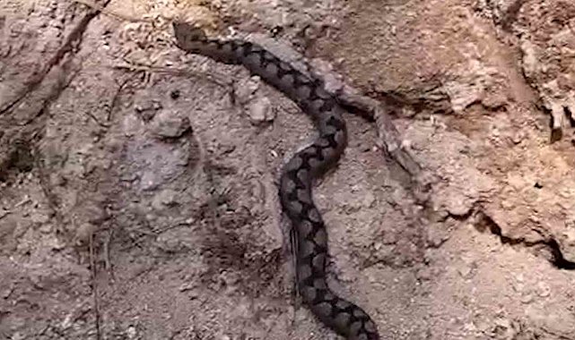 Bolu'da odun yığınları arasında nesli tehlike altında olan zehirli yılan görüntülendi