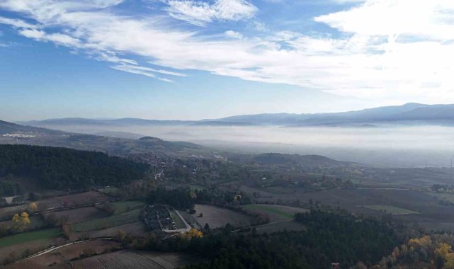 Bolu şehir merkezine çöken sis tabakası, şehri adeta sis denizine çevirdi.Bolu'da sabah saatlerinde etkili olan yoğun sis, şehir merkezini tamamen kaplarken, yüksek noktalardan bakıldığında bulutların üzerinde kalmış bir şehir manzarası oluştu. Havadan dron ile kaydedilen görüntülerde, sis tabakasının arasında kalan binalar ve ormanlar kartpostallık kareler oluşturdu.
