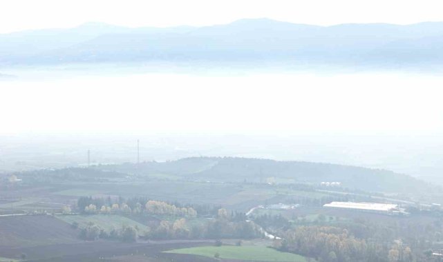 Bolu şehir merkezine çöken sis tabakası, şehri adeta sis denizine çevirdi.