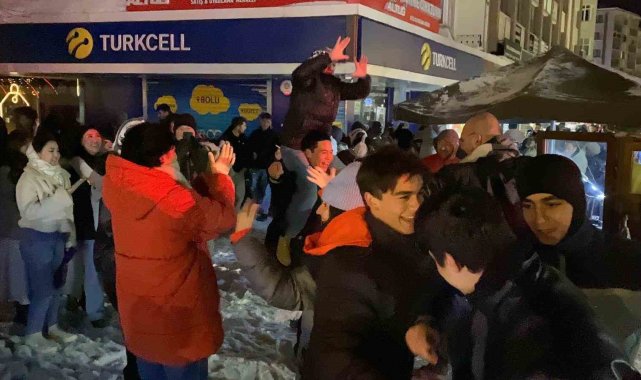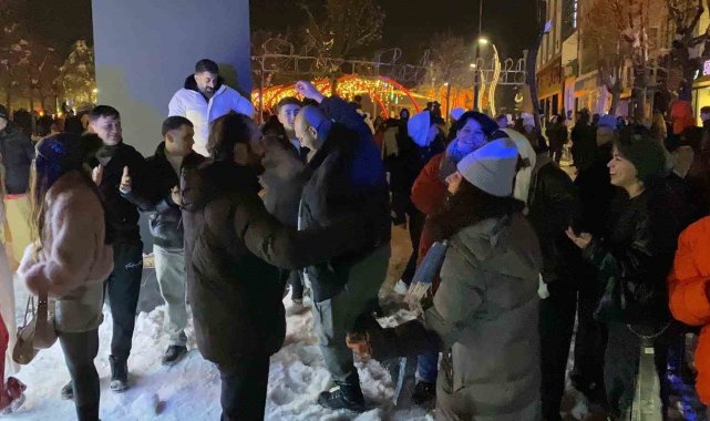 Bolu'da vatandaşlar 2026 yılına coşkuyla girdi. Kentin en işlek noktası olan İzzet Baysal Caddesi'nde toplanan yüzlerce kişi, soğuk havaya aldırış etmeden doyasıya eğlendi. Kimileri oyun havası oynayarak yeni yılı karşılarken, kalabalığın ortasında yapılan sürpriz evlilik teklifi renkli görüntülere sahne oldu.