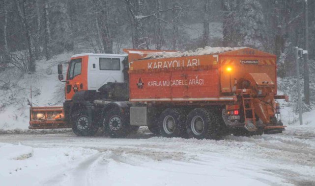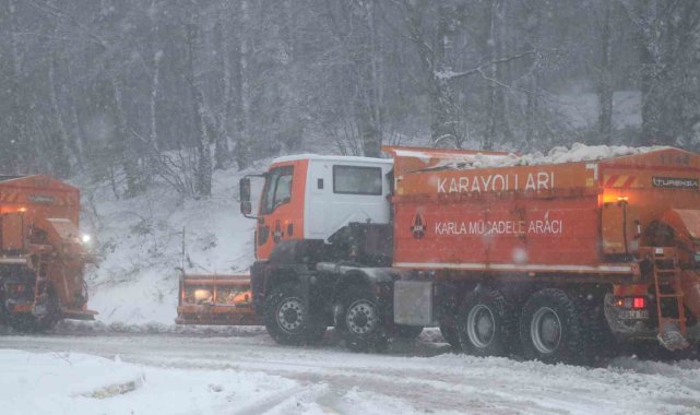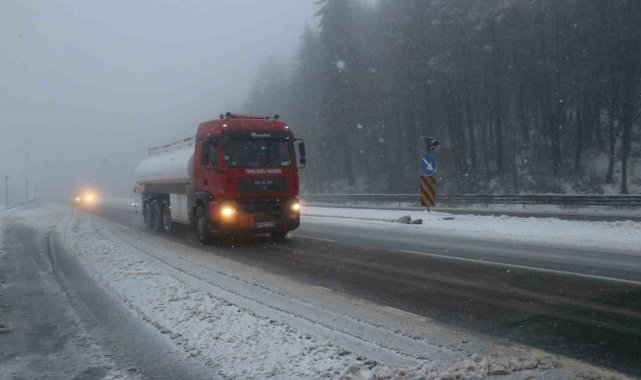 Türkiye'nin en önemli geçiş güzergahlarından D-100 karayolu Bolu Dağı kesiminde kar yağışı etkili oldu, kar kalınlığı 10 santimetreye ulaştı.