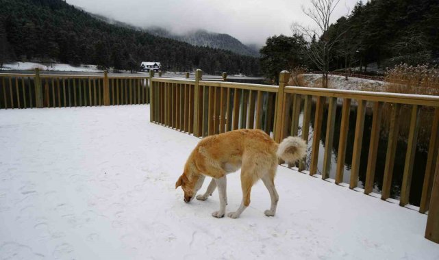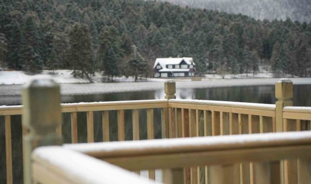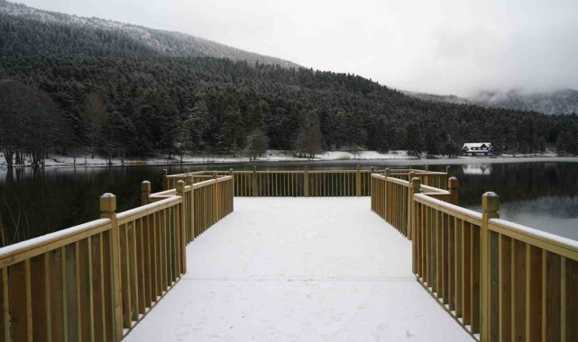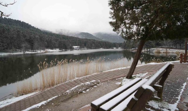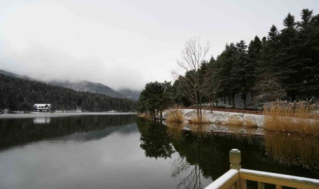Bolu'nun incisi olarak tabir edilen Gölcük Tabiat Parkı beyaz örtüyle kaplandı.