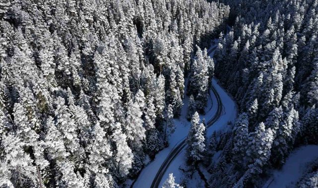 Bolu'da gece saatlerinde etkili olan kar yağışı yüksek kesimleri beyaz örtüyle kapladı.Bolu'da dün gün boyu aralıklarla etkili olan yağmur yüksek kesimlerde yerini kar yağışına bıraktı. Yağan karla birlikte Sarıalan Yaylası, Aladağlar ve Kartalkaya kayak merkezi beyaz örtüyle kaplandı. Kartpostallık görüntülerin oluştuğu kentin yüksek kesimleri dronla görüntülendi. Hava sıcaklıklarının sıfırın altına düştüğü bölgelerde kaynak suları dondu.