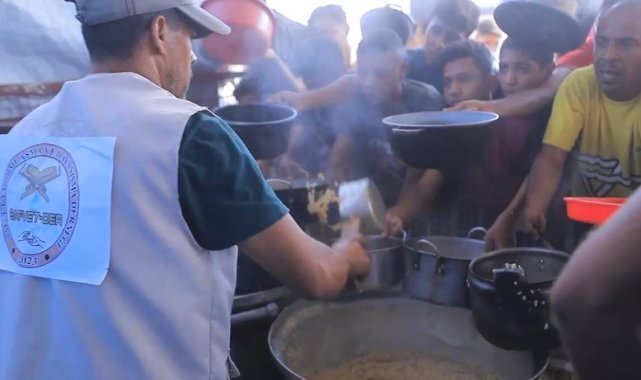 Afyonkarahisar'ın Bolvadin ilçesindeki hayırseverler, Yedi Başak İnsani Yardım Derneği ile İsrail zulmünün devam ettiği Gazze'ye ulaşarak halka sıcak yemek ikramı yaptı.