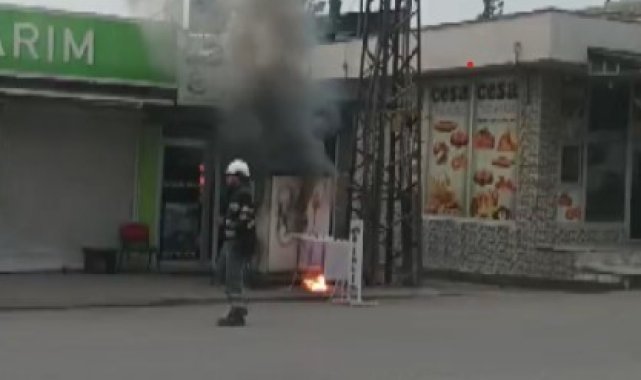 Hatay'ın Reyhanlı ilçesinde elektrik trafosunun bomba gibi patlaması vatandaşları tedirgin etti. Trafonun patladığı anlar kameraya yansıdı.Reyhanlı Mahallesi Gültepe Mahallesi'nde bölgenin elektriğini sağlayan trafoda patlama yaşandı. Bomba gibi patlayan trafo, kısa sürede alevler içinde kaldı. Mahalledeki vatandaşları tedirgin eden patlama ve kıvılcımlar anbean kameraya yansıdı. Kısa sürede bölgeye gelen itfaiye ekipleri, trafoda çıkan yangını söndürürken elektrik dağıtım şirketi personeli tarafından trafoda yenileme yapıldı. Bir süre elektriksiz kalan mahalle trafonun tamir edilmesiyle yeniden aydınlandı."Elektrik akımı çok kullanımda olduğu için trafo kaldırmayınca yandı"Trafoda çok fazla akım olduğu için patlayarak alev aldığını dile getiren Gültepe Mahallesi Muhtarı Orhan Altay, "Arkamızdaki trafo çok akım olduğu için yandı. Ekipler sabah 4'e kadar çalışarak trafoyu aktif hale getirdiler. Ekipler öğrendiğim kadarıyla çok elektrik akımı varmış ve çok kullanımda olduğu için trafo kaldırmayınca yandı. Patlama ve alevler çok vardı. Ekipler gelerek trafoyu değiştirdiler" dedi."Cumartesi günü dükkanda çalışıyorduk ve trafo birdenbire patladı"İş yerinde çalışırken trafonun bomba gibi patladığını ifade eden Şıhlı Canlı, "Cumartesi saat 17.00 civarında dükkanda çalışıyorduk. Dükkan kalabalıktı. Trafo birdenbire patladı sanki bomba gibi patladı. Burada can güvenliğimiz yok. Bunun en kısa zamanda kaldırılmasını talep ediyoruz. Korkuyla çalışıyoruz. Bomba gibi patladı. Kıvılcımlar her yere saçıldı ve patladı" ifadelerini kullandı.