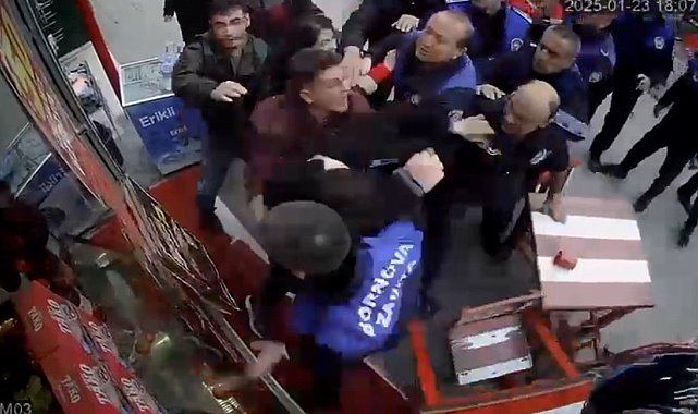 İzmir'in Bornova ilçesinde, kaldırım işgali sebebiyle zabıta ekipleri ile esnaf arasında çıkan tartışma kavgaya dönüştü. Engelli bir vatandaşın da yaralandığı olay, güvenlik kamerasına yansıdı.