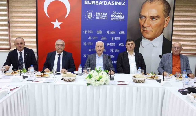 Bursa Gümrük Müşavirleri Derneği üyeleriyle bir araya gelen Büyükşehir Belediye Başkanı Mustafa Bozbey, "Bursa'da faaliyet gösterip vergisini şehir dışında ödeyen firmaların vergilerini Bursa'ya taşımaları konusunda çalışmalar yürüten BUGÜMDER'e teşekkür ediyorum" dedi.