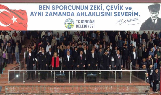 Aydın'ın Bozdoğan ilçesinde 23 Nisan Ulusal Egemenlik ve Çocuk Bayramı, yağışlı havaya rağmen büyük bir coşku ve yoğun katılımla kutlandı. İlçe genelinde düzenlenen programlarda çocukların sevinci ve bayram heyecanı renkli görüntülere sahne oldu.Kutlama programı, Hükümet Konağı bahçesinde bulunan Atatürk Anıtı'na İlçe Milli Eğitim Müdürlüğü tarafından çelenk sunulmasıyla başladı. Törenin ardından etkinlikler ilçe stadyumunda devam etti. Fatih İlkokulu ve Merkez İlkokulu öğrencilerinin hazırladığı gösterilerle gerçekleşen kutlama programına Bozdoğan Kaymakamı Yunus Emre Polat, Belediye Başkanı Mustafa Galip Özel, Cumhuriyet Savcısı Husameddin Görünmez, daire amirleri, sivil toplum kuruluşu temsilcileri, siyasi parti temsilcileri, öğretmenler, öğrenciler, veliler ve çok sayıda vatandaş katıldı. Program, saygı duruşu ve İstiklal Marşı'nın okunmasıyla başladı. Ardından günün anlam ve önemini belirten konuşmalar yapıldı. Öğrenciler tarafından şiirler okunurken, halk oyunları gösterileri ise izleyenlerden büyük alkış aldı. Resim ve şiir yarışmalarında dereceye giren öğrencilere ödülleri, İlçe Milli Eğitim Müdürü Osman Arıkoğlu, Kaymakam Yunus Emre Polat ve Belediye Başkanı Mustafa Galip Özel tarafından takdim edildi. Kutlama programının sonunda Bozdoğan Belediyesi tarafından çocuklara horoz şekeri dağıtıldı. Yağmura rağmen alanı dolduran vatandaşlar, çocukların bayram sevincine ortak oldu.
