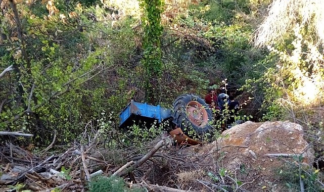 Aydın'ın Bozdoğan ilçesinde şarampole devrilen traktörün sürücüsü hayatını kaybetti.