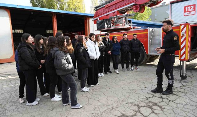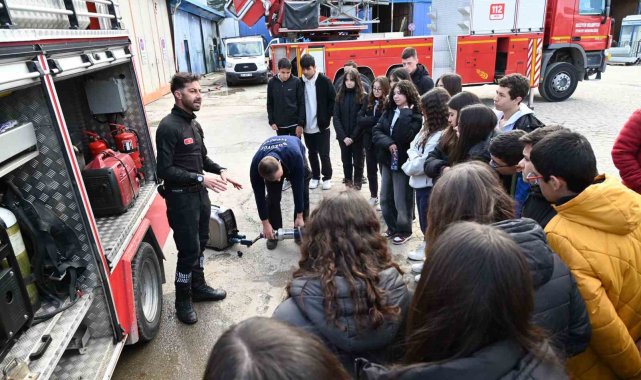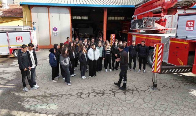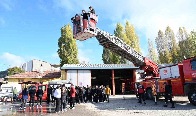 Bozüyük Belediyesi İtfaiyesi'nden Afetlere Hazırlık Kulübü öğrencilerine yangın eğitimi