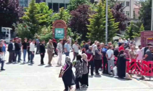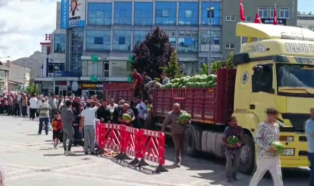 Kayseri'nin Develi ilçesinde bir vatandaş tarafından ücretsiz dağıtılan karpuzlar için uzun kuyruk oluştu.