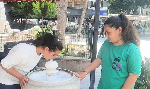 Afyonkarahisar'ın Dinar ilçesinde sokaklardaki çeşmelerden akan buz gibi doğal kaynak suyu sıcak yaz günlerinde vatandaşları ferahlatırken, kaynak suyunun 100 yılı aşkındır ilçeden geçtiği belirtildi.