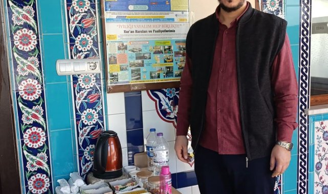 Aydın'ın Buharkent ilçesinde Kadı Hüseyin Ergünhan Camii İmamı Uğur Tunç, oluşturduğu ikram köşesi ile vatandaşların takdirini topladı. Namaz kılmak için camiye gelenler ve özellikle yolcuların hem dinlenip hem de cayını ve kahvesini yudumlayabildiği camide herşey gönüllüerin katkısı ile oluyor. Yolcular için çorap ikramının bile olduğu ikram köşesi görenleri şaşırtıyor.Buharkent ilçesine bağlı Ortakçı Mahallesi'nde bulunan Kadı Hüseyin Ergünhan Camii, yol üzerinde olması sebebiyle cemaatin yanı sıra 24 saat boyunca yolculara da hizmet veriyor. Bölgeden geçerken ibadetlerini yerine getirmek isteyen vatandaşlara özellikle soğuk kış aylarında destek olmak amacıyla harekete geçen cami imamı Uğur Tunç ise örnek bir uygulama gerçekleştirdi. Yaklaşık 4 ay önce Kadı Hüseyin Ergünhan Camii'ne atanan imam Uğur Tunç, yoldan geçen vatandaşlara destek olabilmek amacıyla caminin dış bölümünde bir ikram köşesi oluşturdu. Oluşturduğu ikram köşesi ile takdir toplayan imam Tunç, vatandaşlara çay ve kahve, salep gibi sıcak içecekler ikram ediyor. İbadetlerini yerine getirmek için camiye gelen vatandaşlar da köşede yer alan ikramlardan ücretsiz alabiliyor. Sıcak içeceklerin yanı sıra köşeye çorap da ekleyen Kadı Hüseyin Ergünhan Camii İmamı Uğur Tunç; "Bu tarz köşeler zaten yol üzerinde bulunan birçok camide oluyor. Burası da yol üzerinde bir camii ve hareketliliğin yoğun olduğu bir yer. Bu nedenle yoldan geçerken camimize gelen vatandaşlarımıza ikramda bulunuyoruz. Çay kahve ikramımız ile bir nebze de olsa içlerini ısıtıyoruz. Havaların soğuması sebebiyle köşemize çorap da ekledik. Hava yağışlı olabiliyor, yolcuların çorapları ince olabiliyor. İhtiyacı var ise almaları için çoraplarımız da bulunuyor. Ürünler eksilince hemen yerine koyuyoruz. Bunu kendi imkanlarımızla ve cemaatimizin desteğiyle yapıyoruz. Bu sebeple biz de Allah rızası için böyle bir uygulama yapıyoruz" dedi.