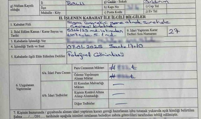 Bolu'da park halindeki aracın camından yere izmarit atan kadın, duyarlı bir vatandaşın kamerasına yakalandı. Plakası belli olan aracın görüntülerinin Bolu Belediyesi Zabıta Müdürlüğüne iletilmesi üzerine araç sahibine 5326 sayılı kanunun 39. Maddesine istinaden cezai işlem uygulandı.Olay, 7 Ocak Salı günü saat 17.10'da Borazanlar Mahallesi 403'üncü sokakta meydana geldi. Edinilen bilgiye göre, bir vatandaş, park halindeki araç içerisinde sigara içtikten sonra izmaritini camdan dışarı atan kadını kayıt altına alarak görüntüleri Bolu Belediyesi Zabıta Müdürlüğü ile paylaştı. Görüntülerin incelenmesi üzerine harekete geçen Zabıta Müdürlüğü ekipleri tarafından aracın sahibi N. U.'ya 5326 sayılı kanunun 39. Maddesi gereğince idari para cezası uygulandı.Bolu Belediyesi Zabıta Müdürü Hakan Yılmaz, "Bize ihbarda bulunan vatandaşımıza teşekkür ediyorum. Ekibimiz, başkanımız Sayın Tanju Özcan'ın temizlik konusundaki hassasiyetini biliyor. Titizlikle şehri takip etmeye devam ediyor. Vatandaşlarımızın da bize destek olmaları ve bu temizlik zincirini büyütmek için kurumumuza destek olmaları bizleri mutlu etti" ifadelerini kullandı.
