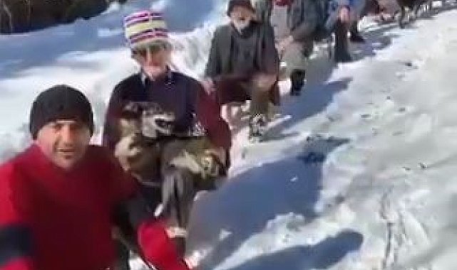Bu köyde 7'den 70'e herkes kızak yarışı yapıyor
