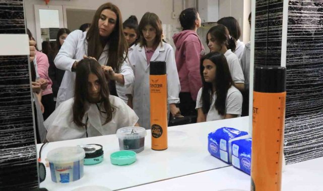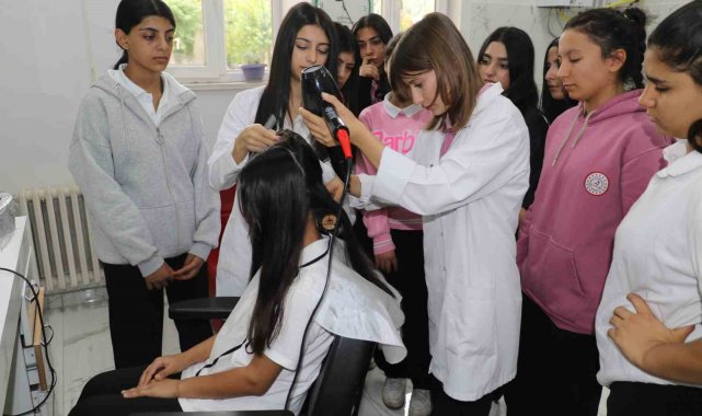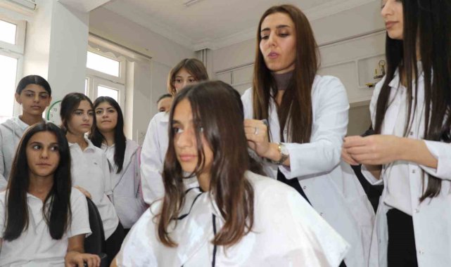 Diyarbakır Dicle Kız Meslek Lisesinde eğitim gören kuaförlük ve cilt bakım bölümü öğrencileri bir yandan meslek öğrenirken diğer yandan harçlıklarını kazanıyor.