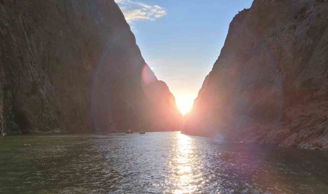 Yılın sadece 10 gününe münhasır Karanlık Kanyondaki gün batımını görmek için dünyanın birçok ülkesinden turist Erzincan'ın Kemaliye ilçesine geliyor.Erzincan'ın Kemaliye ilçesinde bulunan Karanlık Kanyonda bugünlerde kanyonun tam ortasından batan güneş manzarası görenleri hayran bırakıyor. Munzur Dağları üzerinde Karasu Nehri'nin oluşturduğu kanyonda bu manzara sadece 10 gün izleniliyor.Manzarayı izleyebilmek için turistler tekneyle belirli bir alana gidiyor. Karanlık Kanyonun tam ortasından batan gün batımının temmuz ayının başlarında başlayıp 10 gün bu manzarayı izleyebilmenin mümkün olduğunu kaydeden yöre insanlarından turizmci Güven Güldal, "Dünyanın birçok ülkesinden turist bu anı görebilmek için buraya geliyorlar. Gelen turistleri teknelerimizle alan derinliğinin olduğu kısma götürüyoruz. Gün batımı saatinde güneş tam Karanlık Kanyonun ortasından batıyor ve muhteşem bir manzara ortaya çıkıyor." dedi.Doğa fotoğrafçısı Selçuk Örnekçi yerli ve yabancı turistlerle birlikte gün batımını görüntülerken ilçeye yeni atanan Kemaliye Kaymakamı Emirhan Arıkan'da bu anı izleyenler arasında yer aldı.