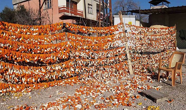 Narenciyenin başkenti Adana'da meyvenin yanı sıra çiftçi, portakal, mandalina ve turunçun kabuğunu çamaşır iplerine asıp kilosunu 20-25 liradan satıyor