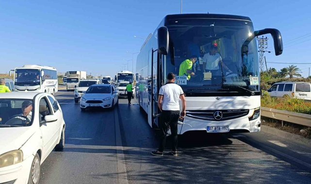 Antalya'da trafik kazasına karışan tur minibüsü sürücüsü, alkollü olup olmadığını soran telefondaki kişiye 'Bu otobüsü verseler içmem ki' dedi. Ancak yapılan kontrolde 0,26 promil alkollü olduğu tespit edilen sürücünün ehliyetine el konuldu.Antalya'nın Manavgat ilçesi D-400 kara yolunda meydana gelen trafik kazasında Antalya Havalimanı istikametine seyir halindeki Süleyman B.'nin kullandığı 07 BTB 192 plakalı tur otobüsü, aynı istikamette seyir halindeki Hasan T.'nin kullandığı 07 BIE 7190 plakalı motosiklete arkadan çarptı. Kazada çarpmanın şiddetiyle yola savrulan motosiklet sürücüsü ve arkasında bulunan Ahmet Akif A. şans eseri otobüsün altında kalmaktan kurtulurken, kazayı gören diğer sürücüler yardıma koştu. 112 Acil Çağrı Merkezine yapılan ihbarın ardından olay yerine polis ve sağlık ekipleri sevk edilirken metrelerce sürüklenerek yaralanan motosiklet sürücüsü Hasan T. ve Ahmet Akif A. olay yerindeki ilk müdahalelerinin ardından ambulansla hastaneye kaldırıldı."İçmem ki" dedi, 0,26 promil alkollü çıktıKaza anı bir iş yerinin güvenlik kamerasına saniye saniye yansırken, görüntülerde otobüsün motosiklete arkadan çarptığı, çarpmanın şiddetiyle savrulan motosiklet sürücüsü ve yolcunun otobüsün altında kalmaktan son anda kurtulduğu ve metrelerce yolda sürüklendiği görüldü. Kazanın ardından tur otobüsünde bulunan turistler olay yerine çağrılan bir başka otobüse aktarılarak havalimanına doğru yola çıktı. Kaza sonrası telefon görüşmesi yapan otobüs sürücüsü, alkollü olup olmadığını soran karşısındaki kişiye 'Bu otobüsü verseler içmem ki' şeklinde cevap verirken, yapılan alkol kontrolünde 0,26 promil alkollü olduğu belirlendi. Otobüs sürücüsüne alkollü araç kullanmaktan 6 bin 439 TL para cezası uygulanırken sürücü belgesine 6 aylığına el konuldu.