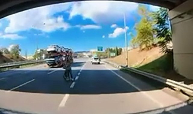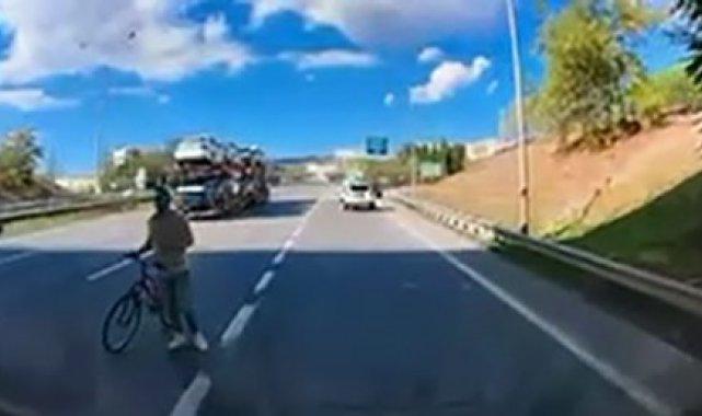 Bursa'da geçtiğimiz aylar içerisinde birçok kez ekranlara gelen tersten ilerleyen otomobillerin yerini bu sefer de bisikletli aldı. Bisikletiyle yolun ortasından tersten gelen kişi, herkesin yüreğini ağzına getirdi.Olay, Bursa-Yalova yolu üzerinde meydana geldi. Hızla ilerleyen araçlar, karşısında bisikletli vatandaşı görünce ne yapacağını şaşırdı. Kamyonların ve otomobillerin arasında sahilde yürürcesine ilerleyen bisikletli kişinin o anları bir otomobilin araç içi kamerasına yansıdı.