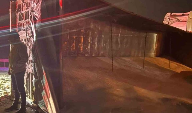 Sivas'ta buğday yüklü tırın devrilmesi sonucu yol trafiğe kapandı, yolda uzun araç kuyrukları oluştu.Edinilen bilgilere göre kaza, Sivas-Kayseri karayolunda meydana geldi. Şarkışla istikametine giden Ö.G. (31) yönetimindeki 46 PE 999 plakalı tır, buzlanma sebebiyle sürücüsünün direksiyon hakimiyetini kaybetmesi sonucu bariyerlere çarparak yan yattı. Kazada can kaybı ve yaralanma yaşanmazken, tırda bulunan buğdayların yola savrulması nedeniyle Şarkışla istikameti trafiğe kapandı. Kazanın ardından bölgede uzun araç kuyrukları oluşurken, karayolu ekipleri yolun trafiğe açılması için çalışma başlattı.