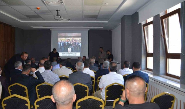 Bölgesel Amatör Lig'de (BAL) mücadele eden Bulanık Kopspor'un yeni sezondaki yol haritasını belirlemek amacıyla bir toplantı gerçekleştirildi.Muş'un Bulanık Kaymakamı Ömer Övünç Koşansu'nun öncülüğünde, Bölgesel Amatör Lig'de (BAL) ilçeyi temsil eden Bulanık Kopspor'un yeni sezondaki hedeflerini belirlemek üzere bir değerlendirme toplantısı düzenlendi. Kaymakam Koşansu'nun öncülüğünde düzenlenen toplantıya belde belediye başkanları, siyasi parti temsilcileri, sivil toplum kuruluşlarının yöneticileri ve ilçe esnafı katıldı."Kopspor Başkanı, yeni sezon projelerini slayt sunumla anlattı"Toplantının ana amacı, Bulanık Kopspor'un 2024-2025 sezonunda izleyeceği stratejiyi belirlemek ve takımın ihtiyaç duyduğu desteği organize etmek oldu. Bulanık Kopspor Kulüp Başkanı Yasin Temel, takımın mevcut durumu, hedefleri ve yeni sezon planlarını anlatarak, ilçenin takıma maddi ve manevi destek vermesi gerektiğini vurguladı. Başkan Temel yaptığı sunumda, geride kalan sezonun değerlendirmesini yaptıktan sonra, yeni sezon için planlanan projeleri katılımcılarla paylaştı. Slayt gösterisi eşliğinde sunulan bilgilerde, takımın teknik kadrosu, alt yapı faaliyetleri, kamp süreci, transfer çalışmaları ve bütçe ihtiyacı ayrıntılı şekilde aktarıldı. Başkan Temel, "Bulanık Kopspor sadece bir futbol takımı değil, ilçemizin adını tüm Türkiye'ye duyuran bir değerdir. Başarı için birlik içinde hareket etmeliyiz. Bu sezon hedefimiz, bir üst lige yükselmek. Ancak bu, tüm Bulanık'ın desteğiyle mümkün olacak" dedi."Bu takım Bulanık'ın ortak değeridir"Toplantıda konuşan Kaymakam Koşansu, Bulanık Kopspor'un sadece bir spor kulübü değil, aynı zamanda ilçenin tanıtımında önemli rol üstlenen bir değer olduğunu söyledi. Kaymakam Koşansu, "Bulanık halkının bu takıma sahip çıkması gerekiyor. Bu takım hepimizin takımı. Başarı ancak birlik ve beraberlikle gelir" dedi. .Destek çağrısında bulunan Kaymakam Koşansu , sporun gençleri kötü alışkanlıklardan uzak tutmakta büyük rol oynadığını vurgulayarak, "Kopspor'un başarısı sadece sahadaki 11 futbolcunun değil, tüm Bulanık halkının ortak emeğiyle mümkün olur. Bu takım bizim ortak değerimizdir. İlçemizde sporu desteklemeli, gençlerimizi teşvik etmeli ve Kopspor'a her alanda sahip çıkmalıyız. Biz Kaymakamlık olarak tüm kurumlarımızla birlikte gereken desteği sunuyoruz. Bizler Bulanık Halkının da takımlarına sahip çıktığını görmek istiyoruz" ifadelerini kullandı.